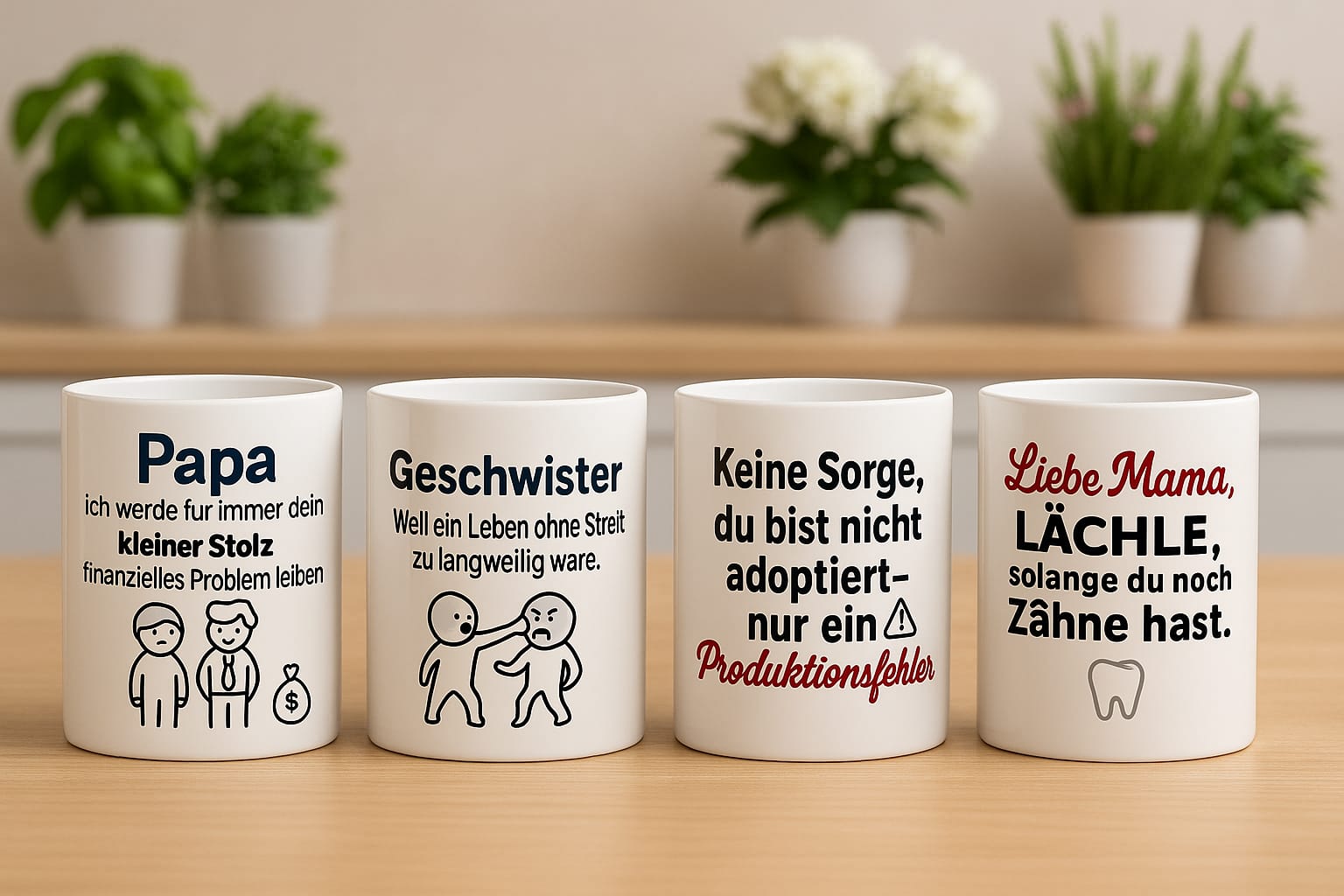 Sprüche, die hängen bleiben – auf Tassen & im Kopf.